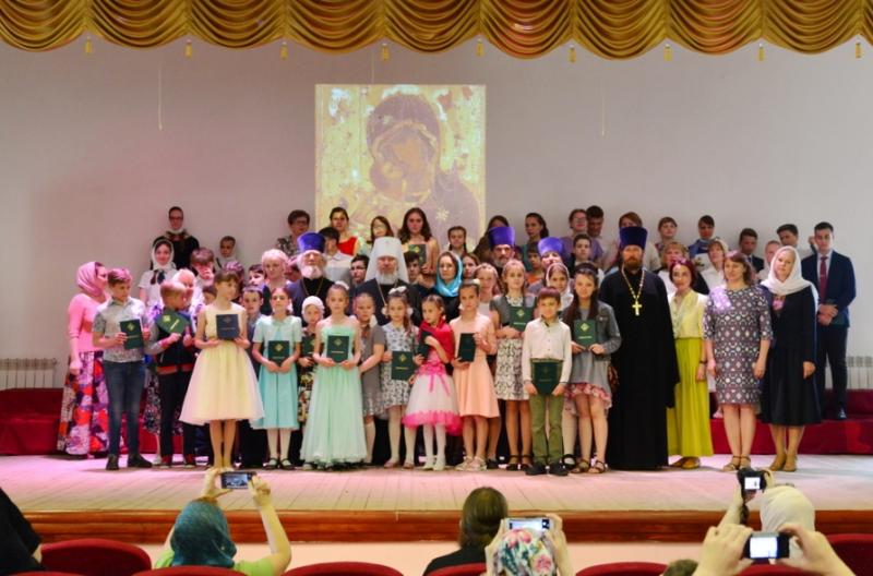 После богослужения Его Высокопреосвященство поздравил выпускников со знаменательным событием в их жизни и пожелал достойно служить Церкви. Затем в актовом зале началась концертная программа, подготовленная детьми. Праздник закончился вручением свидетельств об окончании Воскресной школы и сладким столом.