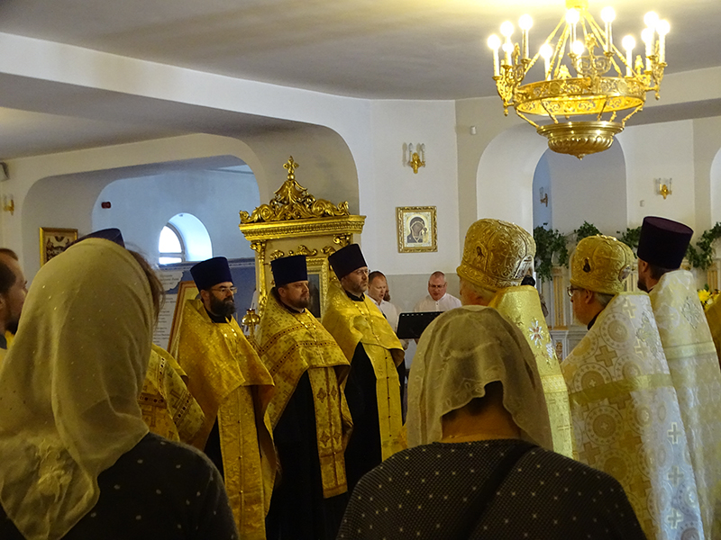 Торжественную встречу святынь у входа в Брянский Свято-Троицкий Кафедральный Собор возглавил Секретарь Брянской епархии протоиерей Павел Чикалин. Ковчег и чудотворный список были установлены в центре нижнего яруса Кафедрального Собора и перед святынями совершен молебен Божией Матери и святителю Феофану Затворнику. Богослужение возглавил протоиерей Павел Чикалин в сослужении духовенства Брянского градского благочиния, в том числе настоятеля нашего храма отца Алексия.