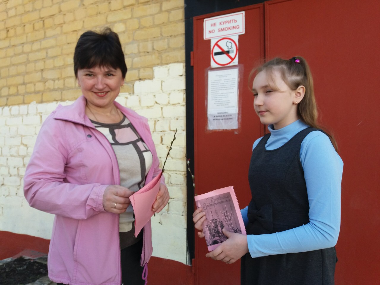 Воспитанники Воскресной школы раздали вербы и брошюры с объяснением праздника Вход Господень в Иерусалим.